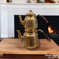 El İşlemeli Bakır Çaydanlık Orta Boy